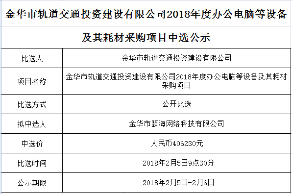 金華市金義東軌道交通有限公司運營2026-2028年度場段司機公寓床上用品采購項目中標候選人公示