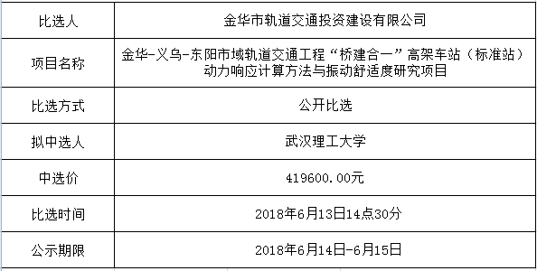 金華市金義東軌道交通有限公司運營環(huán)境長效管理系統(tǒng)項目中標(biāo)候選人公示