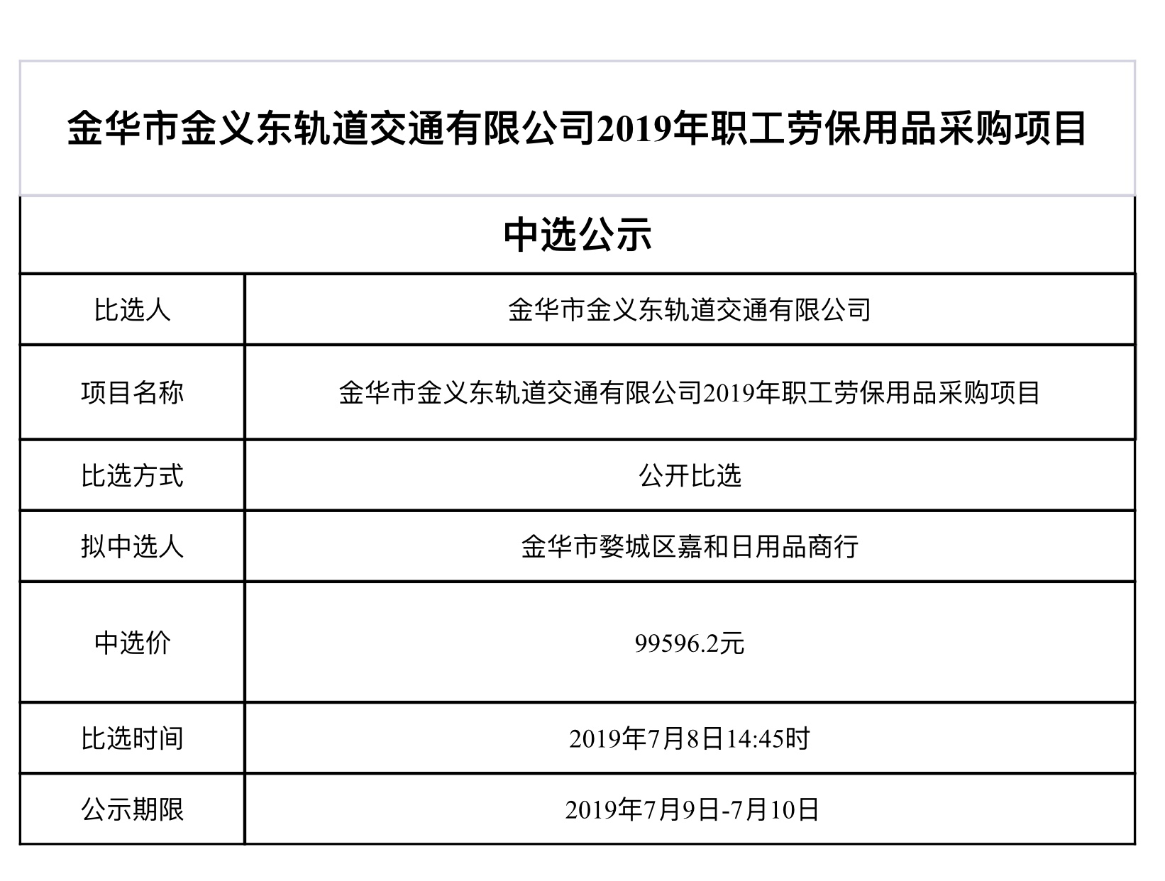 金華市金義東軌道交通有限公司運(yùn)營(yíng)環(huán)境長(zhǎng)效管理系統(tǒng)項(xiàng)目中標(biāo)候選人公示