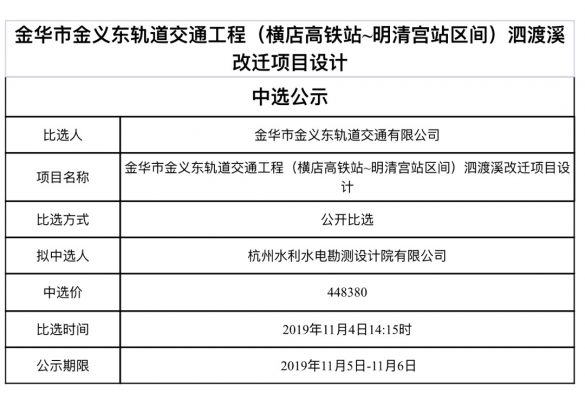 金華市金義東軌道交通有限公司運(yùn)營(yíng)環(huán)境長(zhǎng)效管理系統(tǒng)項(xiàng)目中標(biāo)候選人公示