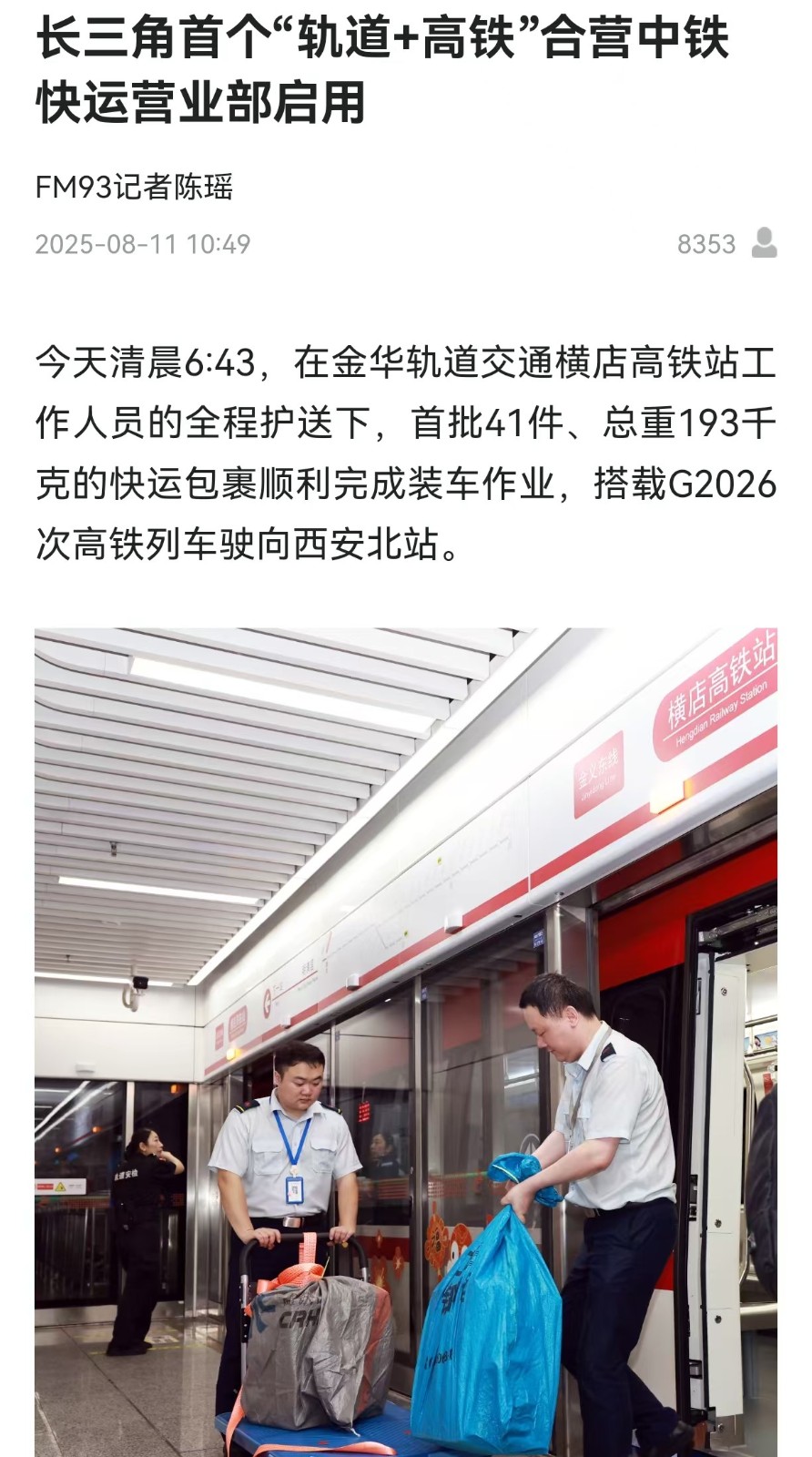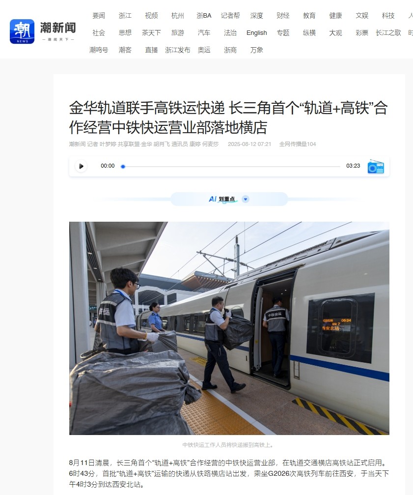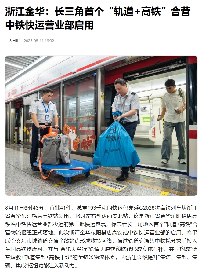 8月11日,長(zhǎng)三角首個(gè)“軌道+高鐵”合營(yíng)中鐵快運(yùn)營(yíng)業(yè)部啟用。該營(yíng)業(yè)部將串聯(lián)金義東市域軌道交通全線站點(diǎn)形成收攬網(wǎng)絡(luò),在全線31座車(chē)站均可辦理業(yè)務(wù),通過(guò)軌道交通集中收攬分撥后接入全國(guó)高鐵物流網(wǎng)。