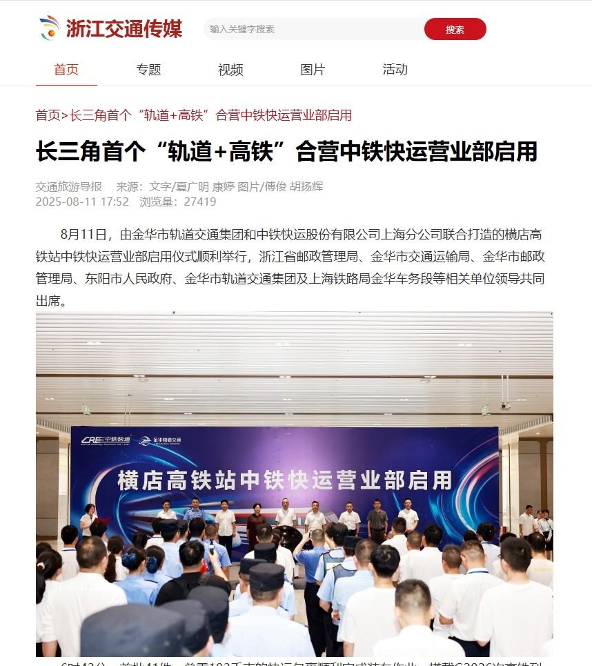 人民網(wǎng)、央廣網(wǎng)、改革網(wǎng)、《工人日?qǐng)?bào)》客戶端、中央廣電總臺(tái)國(guó)際在線、《浙江日?qǐng)?bào)》、浙江衛(wèi)視《聯(lián)播快訊》、潮新聞客戶端、浙江交通之聲、交通旅游導(dǎo)報(bào)、金華日?qǐng)?bào)等國(guó)家級(jí)、省市級(jí)主流媒體相繼報(bào)道相關(guān)內(nèi)容。