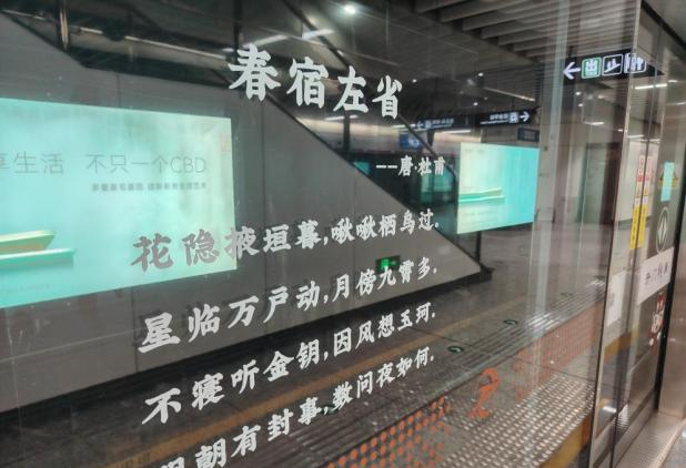 站臺門上,古詩詞與廉潔標語精心交錯,詩意與廉語交融。